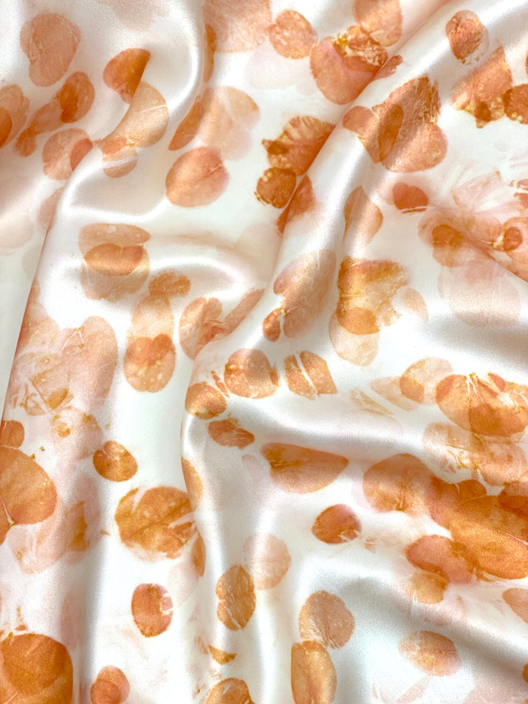 We use a unique process called botanical dyeing to create our original artworks. We then turn these artworks into a digital repeat pattern for the purpose of digital printing. From here, we get our designs digitally printed onto silk, creating our exclusive and one of a kind botanical print silk textiles.