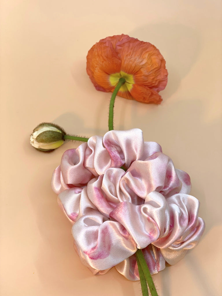 Details: Every silk scrunchie is individually handmade from our exclusive botanical silk designs. Please expect colour and pattern variations and differences to occur from the images shown. Handcrafted to order. Please allow 7 business days for us to make your order.