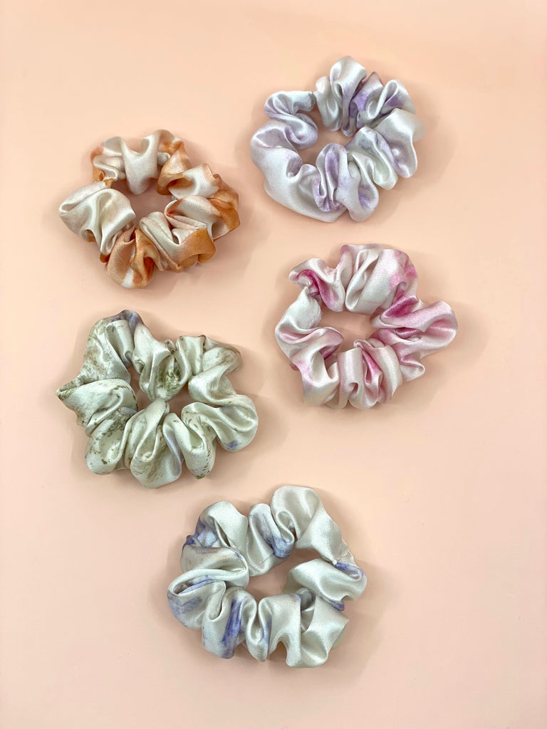 Details: Every silk scrunchie is individually handmade from our exclusive botanical silk designs. Please expect colour and pattern variations and differences to occur from the images shown. Handcrafted to order. Please allow 7 business days for us to make your order.